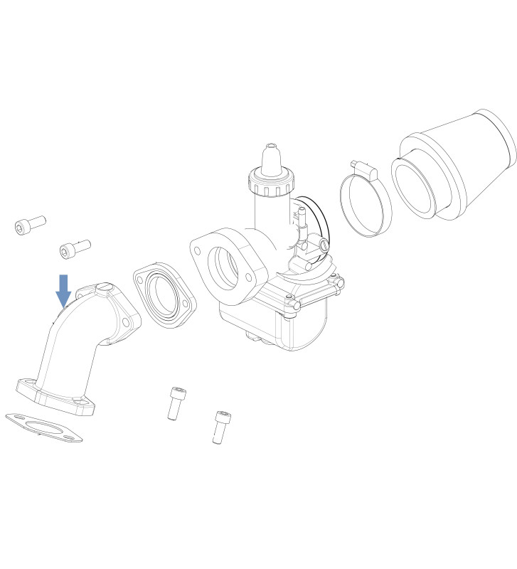 Collettore alluminio 160 per Ohvale Gp-0 con carburatore PZ 27 e con carburatore Keihin PE 28